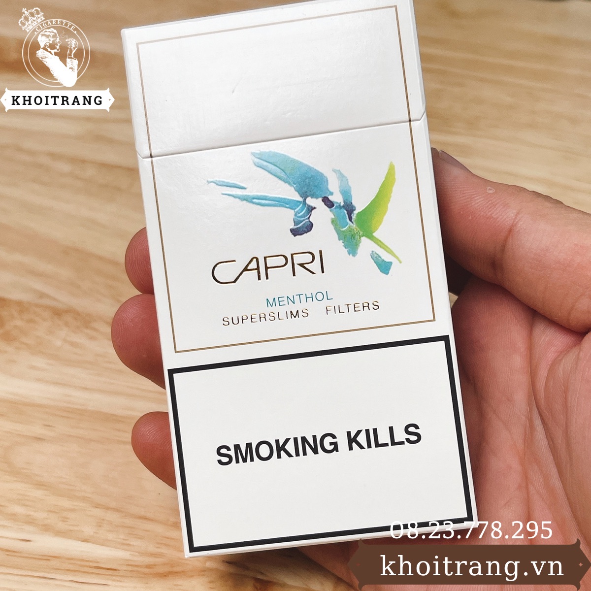 Capri Menthol là một loại thuốc lá đến từ Mỹ mang hương vị bạc hà the mát.Là loại thuốc lá đầu lọc điếu nhỏ giúp loại bỏ nhiều chất độc hại hơn trong thuốc lá.Capri mang hương vị bạc hà đặc trưng,ngửi gói thuốc thôi cũng nghe mùi the mát,mang lại cảm giác the mát đọng lại trên đầu lưỡi,không gây mùi khó chịu cho những người xung quanh.Phù hợp với cả Nam và Nữ thích hương vị the mát